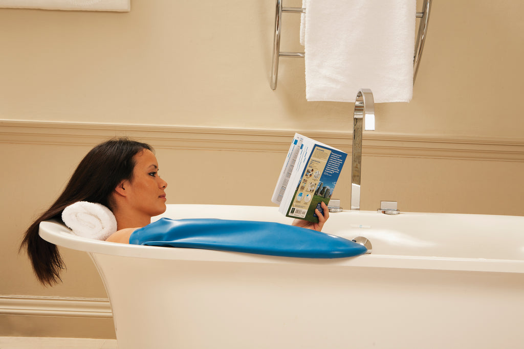 - Gently remove any air from the protector by holding the seal open as you slowly lower your arm into the pool. The pressure of the water will push out the air through the seal at the top. Once all the air is out, slowly release the seal and make sure it's tight and smooth all around your arm.